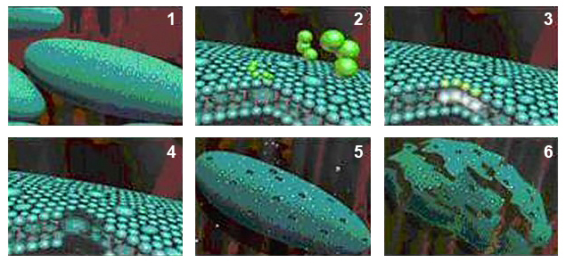 - 臭氧分子滲透細菌細胞膜